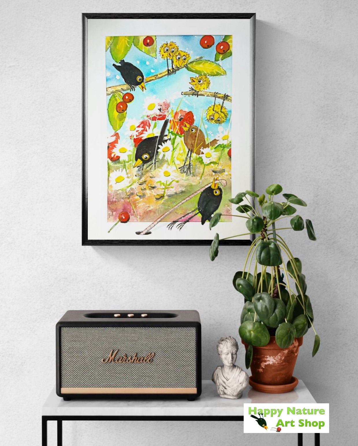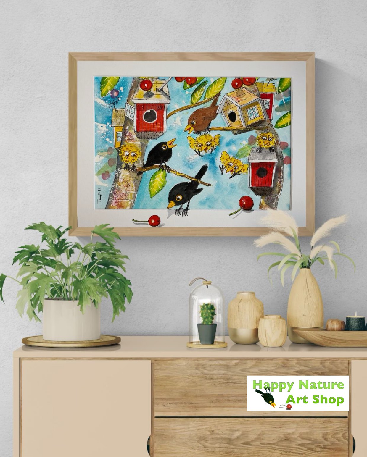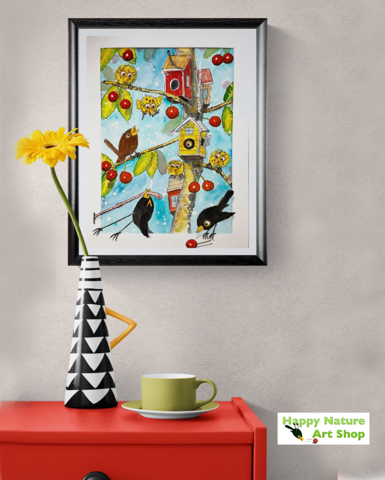 Originalmåleri med sångsvanar på Finskt sjökort från 1941! Före andra världskriget. Storlek 40x50cm med ram.